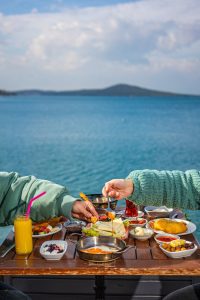 Ayvalık’ta yeni bir günü karşılamak için en iyi başlangıç, Açelya Cafe’nin özenle hazırlanmış kahvaltı sofraları. Yerel ve taptaze malzemelerle hazırlanan serpme kahvaltı seçeneklerimiz, hem göze hem de damak tadına hitap eder. Sıcak çay eşliğinde sunulan bu zengin menüyü deniz manzarasının büyüleyici atmosferinde deneyimlemek bir başka güzel.